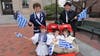 Thanasi was animated, waving his flag while dressed in traditional Greek garb, passed down to him.