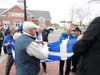 The group Saturday was made up of members and friends of AHEPA, the American Hellenic Educational Progressive Association #35, who gathered first at Hellenic Circle on Central Street, then relocated to City Hall for the raising of the Greek flag, which has become an annual tradition.