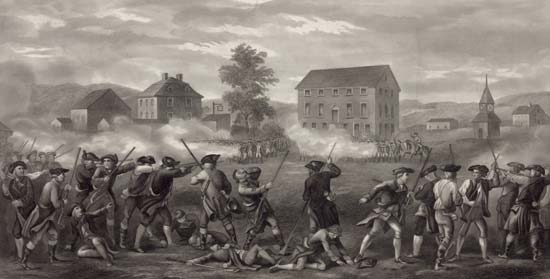 The story begins, of course, long before the actual day itself. For years tensions had been increasing between the North American colonials and their masters in the British government. Disputes over taxes and other British policies had resulted in protests, riots, and boycotts. The Stamp Act, the Revenue Act, the “Boston Massacre,” and the climactic Boston Tea Party were the culmination of a decade of growing conflict. As a result, the city of Boston was garrisoned with large numbers of British troops and its harbor was sealed off to prevent trade under the Boston Port Act, impoverishing the city, and further angering the colonials.