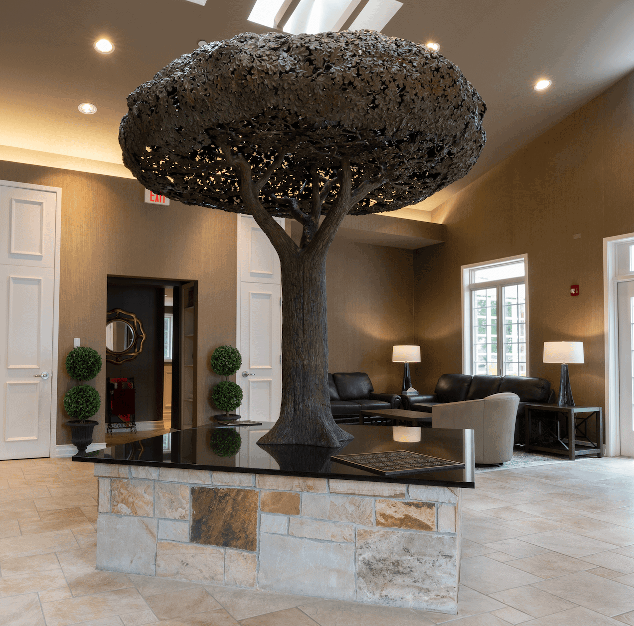 “These families come to us in the most difficult times of their lives, some numb, some in shock and disbelief, but all very aware that their lives will be forever changed. Our hope is this piece reminds them to look up and keep moving forward. There are new branches, new leaves, and more blooming that is yet to come, but they are anchored by the memory of their loved ones.”