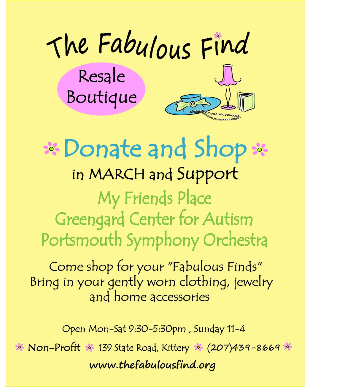 The Greengard Center for Autism is thrilled to be one of The Fabulous Find Resale Boutique's March profit recipients. The funds that our organization will receive will go to providing quality programs for adults with autism in our community. Please partner with us in supporting The Fabulous Find by making donations and shopping at their wonderful Boutique.