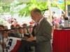 Ret. U.S. Supreme Court Justice David Souter and Gov. John Lynch urge 105 former New Hampshire immigrants to assume the responsibility that accompanies U.S. citizenship.