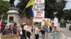 Their goal was to get as far as Rochester Commons where the President was scheduled to speak at 4:30 p.m. following his visit to Windham High School on Saturday morning. But they were stopped by Rochester Police in front of the Walgreen's pharmacy and told to turn around and rally at the intersection of Columbus and Main streets.