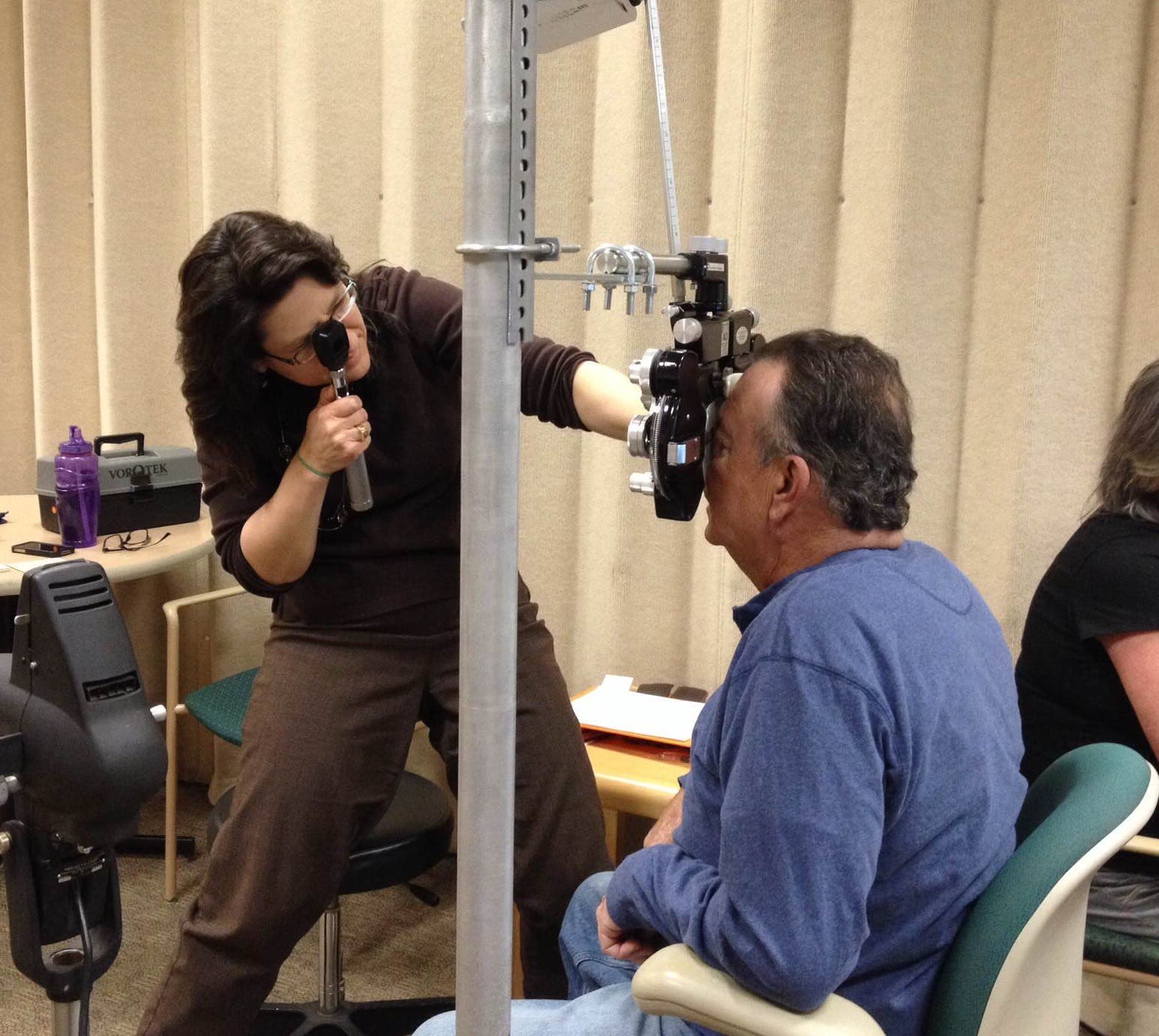 Caption: Optometrist Amy Pruszenski organized a team of optometrists and other volunteers to offer comprehensive eye exams and access to eyeglasses for diabetic patients at Families First Health Center.