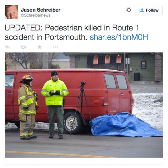 Timothy Morrison, 51, of Portsmouth, was reportedly attempting to cross Route 1 near the Southgate Plaza at around 6 a.m. on Jan. 12, when he ran into the side of a Jeep Cherokee. The impact knocked him to the ground and he was subsequently run over by a Chevrolet van. After being hit by the van, Morrison became entangled in the under carriage of the van and was pronounced dead at the scene by an assistant deputy medical examiner.