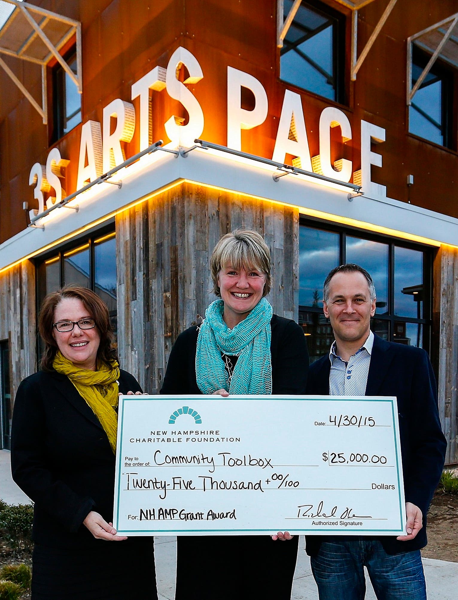 Caption: Community Toolbox, Inc. in Portsmouth was chosen as last night’s winner of the Entrepreneurs Foundation of New Hampshire’s AMP NH Award Competition. Pictured here, from left to right, Mary Jo Brown, EFNH member and owner of Brown & Company Design, Inc; Cheryl Van Allen, executive director of Community Toolbox, Inc.; and Evan Karatzas, EFNH member and founder of Proximity Labs. Courtesy