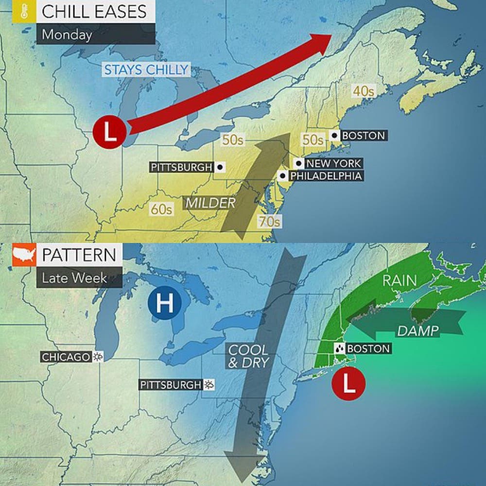 Temperatures will be more seasonal during the early part of the week and rain is expected to return later in the week, according to AccuWeather.com.