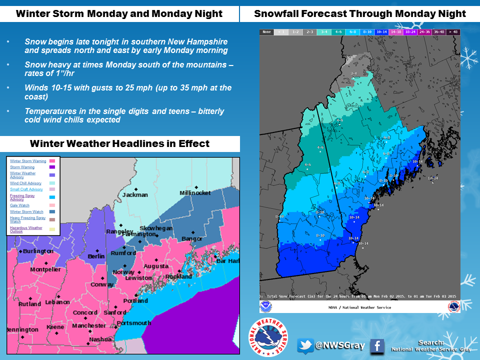 The National Weather Service has upgraded its latest storm and snowfall forecast telling Granite Staters to expect anywhere from eight to 14 inches of snow through Monday night.