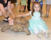PHOTO 2: Abha Routh, 5, of Salem poses with an 80-pound tortoise from Zoo Creatures at The Mall at Rockingham Park's Kidgits Dino Days.