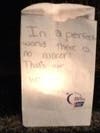 We walked for them and for many that we do not even know. Besides raising money and awareness, we had so much fun. We walked around the high school track all night. We wore silly costumes and won prizes for our Lady Gaga outfits. We made crazy newspaper and duct tape dresses for the Fashion Runway. We cheered, we laughed, we cried, we celebrated and we remembered.