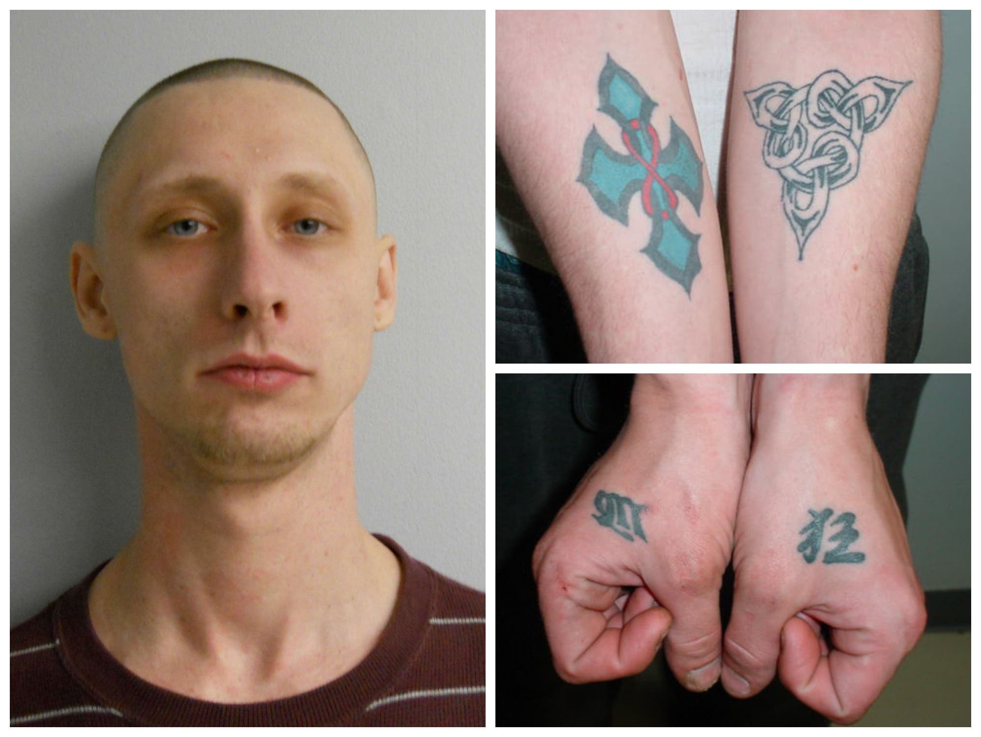 He’s Jon Benedict, 28, a white male, standing 5-feet, 9-inches, weighing about 180 lbs., with brown hair and light skin, and a number of tattoos, including one on his chest that just says, “CRIME.”