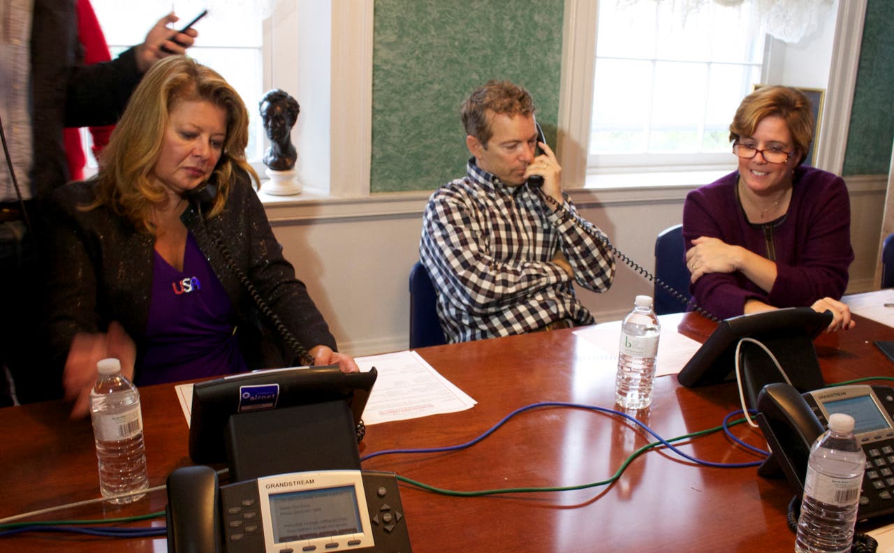 After shaking hands and posing for pictures, Paul hit the phones, calling voters that New Hampshire Republicans had ID’d as undecided.