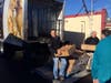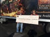 Captions: Tuscan Brands founder Joe Faro presenting a check to H. Bridget Shaheen, the executive director of the Lazarus House; Tuscan Brands founder Joe Faro handing off a box of fresh turkeys to Ken Cambell, food coordinator for the Lazarus House; Joe Faro unloading turkeys from a Tuscan Brands truck at Lazarus House.