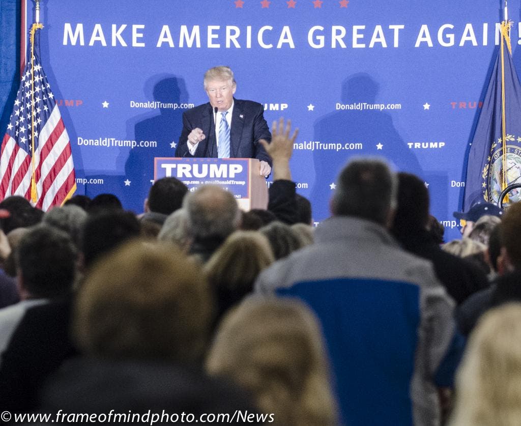 Caption: Trump in Windham photo from earlier this year courtesy of Jeffrey Hastings of Frame of Mind Photography. FrameofMindPhoto.com.