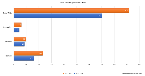 The investigations combined efforts from local, state and federal law enforcement as part of New Jersey's Violent Crime Initiative (VCI), which identifies, targets and prosecutes violent offenders and criminal organizations, according to the DOJ. Shooting incidents have declined statewide and in cities where the VCIs operate compared to last year, including reductions in Newark (30 percent), Jersey City (27 percent) and Paterson (12 percent).