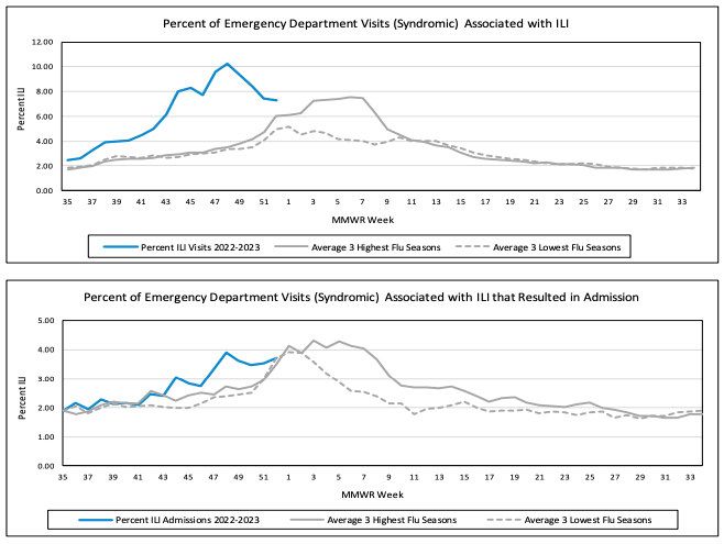 New Jersey continues to outpace its three worst flu seasons of the past decade in one key metric: the rate of emergency-department visits associated with influenza-like illness. However, the rate of those visits that result in admission no longer exceeds the state's most-severe flu seasons of recent years.