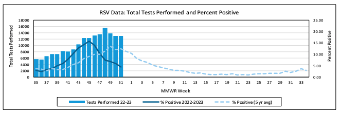 For a ninth-straight week, more than 15 percent of RSV tests administered in New Jersey turned up positive. RSV is a common respiratory virus that usually causes mild, cold-like symptoms, the CDC says. Most people recover in a week or two, but the virus can be serious, especially for infants and older adults.