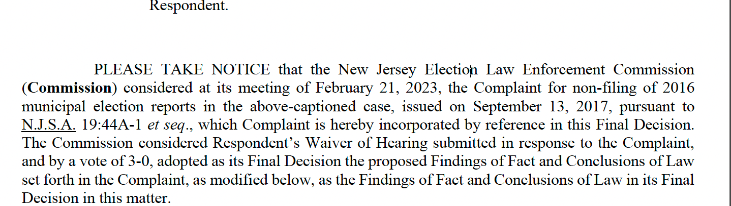 This would include a 2017 investigation against the NJ Senate Democratic Majority PAC.