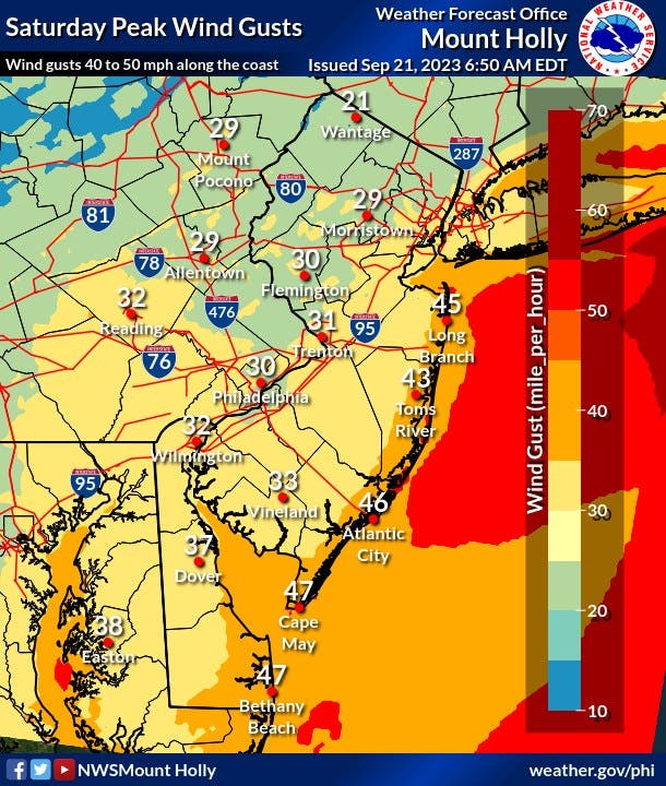 Forecasters said coastal flooding will be a major concern, with rainfall between 2 to 4 inches possible. And, high wind gusts will again make swimming conditions dangerous along Jersey Shore beaches, said the National Weather Service: