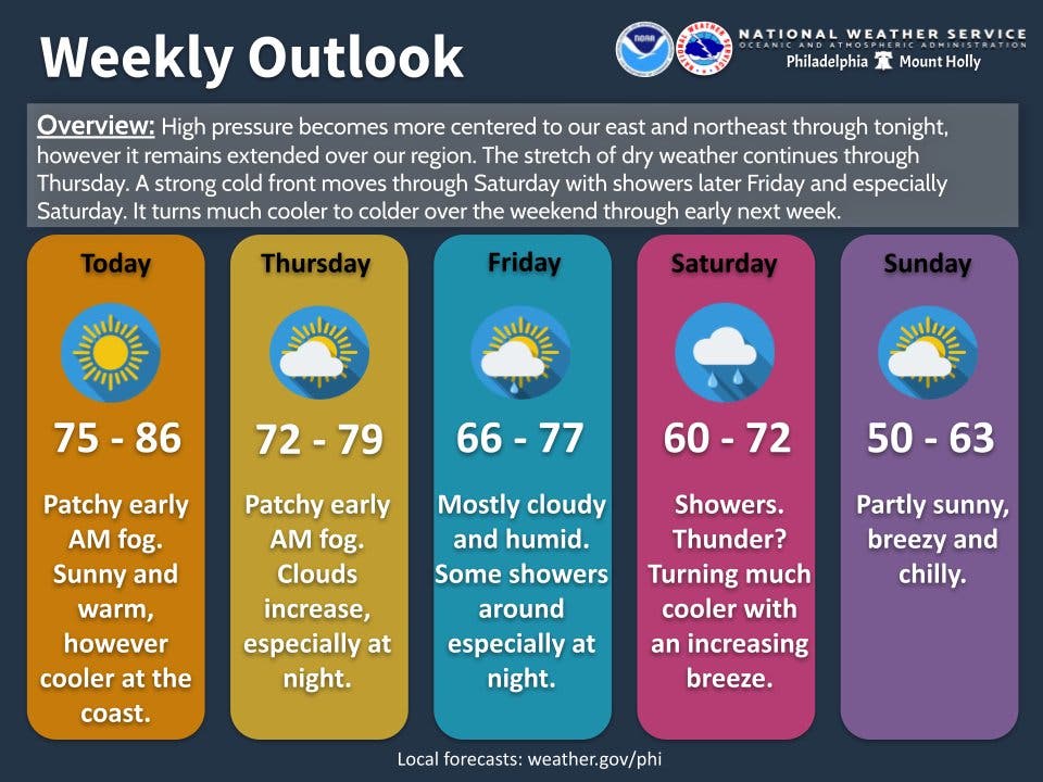 Here is the extended forecast for New Jersey, from the National Weather Service: