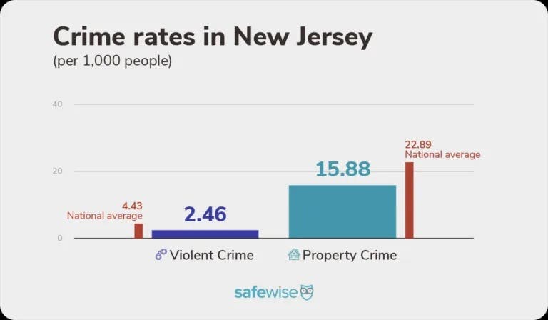 Overall, New Jersey fared well in the study. The violent crime rate in the Garden State is 2.46 incidents per 1,000 people, which is lower than the national average of 4.43 and the seventh lowest violent crime rate nationwide.