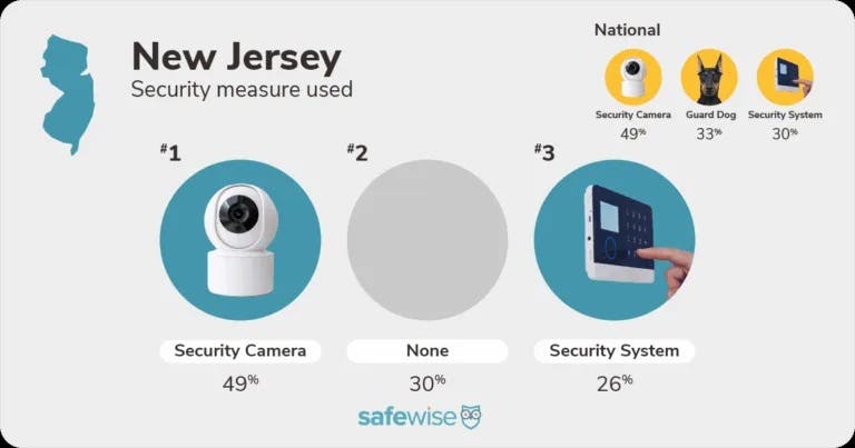 The number one way New Jersey residents protect their property is with security cameras at 49 percent followed by security systems at 26 percent.
