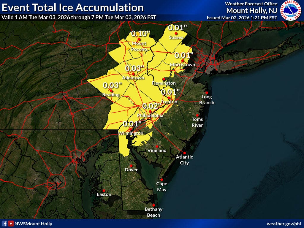 Snow and freezing rain are expected to cause a slippery morning commute for New Jerseyans Tuesday morning, according to the latest forecast.