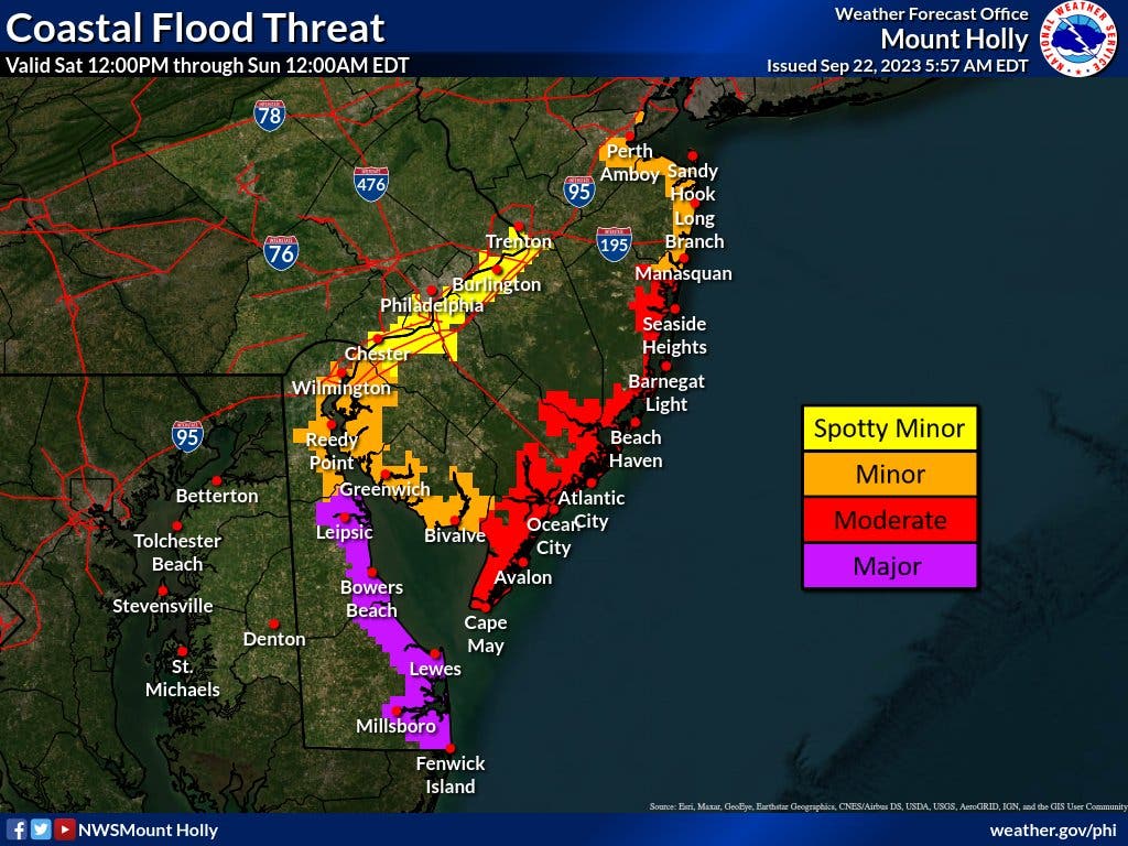Just before the 3 p.m. high tide in Atlantic City on Saturday, the National Weather Service said it had received numerous reports from coastal communities of street flooding and road closures.