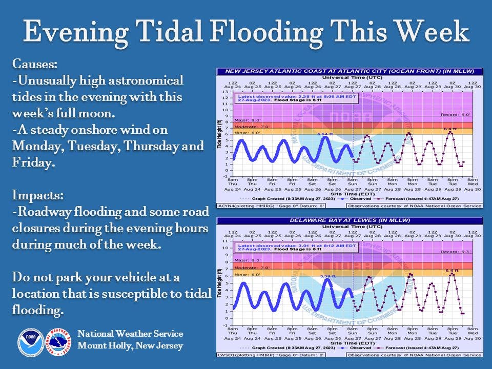 “Unusually high astronomical tides” are also possible along the Jersey Shore in the evening this week, with the full moon.