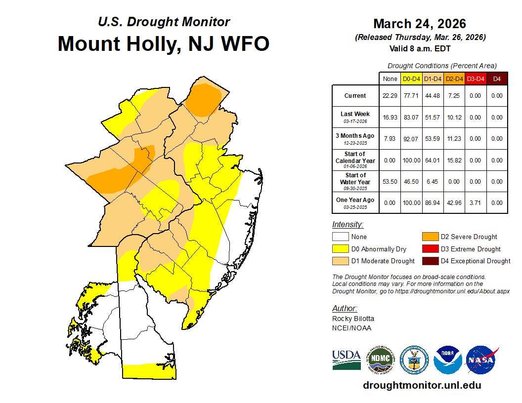 Much of New Jersey is experiencing some level of drought conditions at the moment, according to the U.S. Drought Monitor.