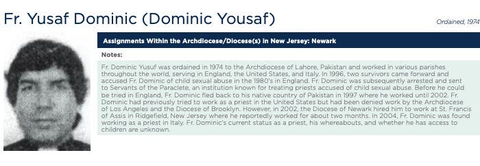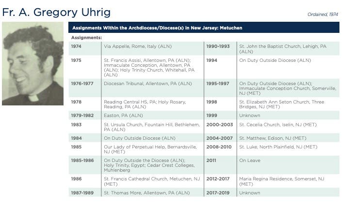 The law firms of Jeff Anderson & Associates released a report containing the names and histories of more than 300 people accused of sexual misconduct in the Archdiocese of Newark, Diocese of Camden, Diocese of Metuchen, Diocese of Paterson and Diocese of Trenton.