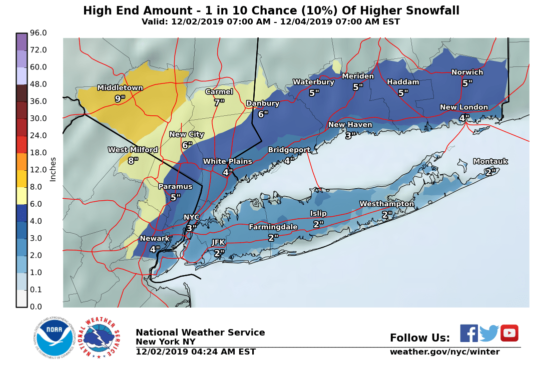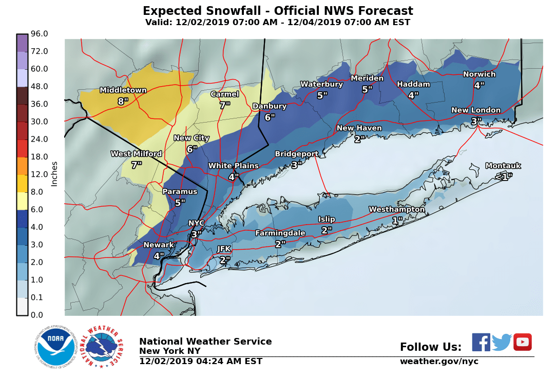 The National Weather Service has issued snow totals; come back for updates: