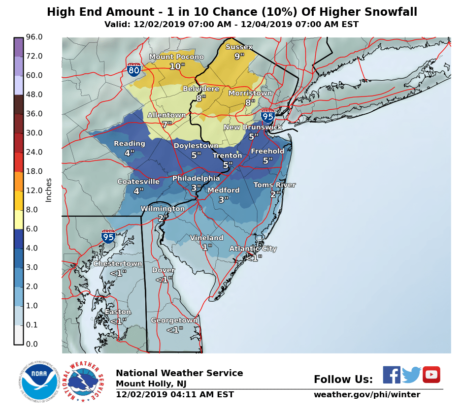 New Jersey Snow Totals, Town-By-Town - 12/1/19, 12/2/19, 12/3/19