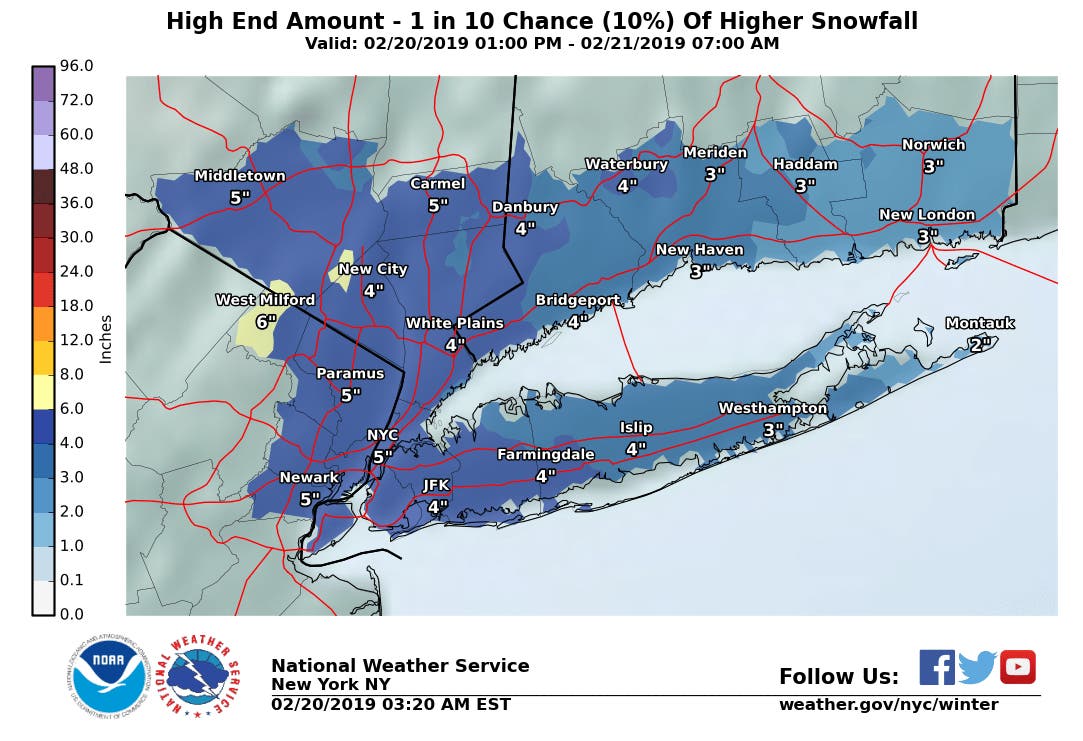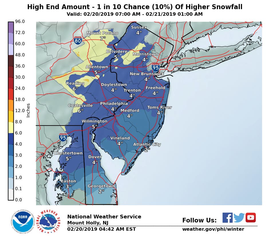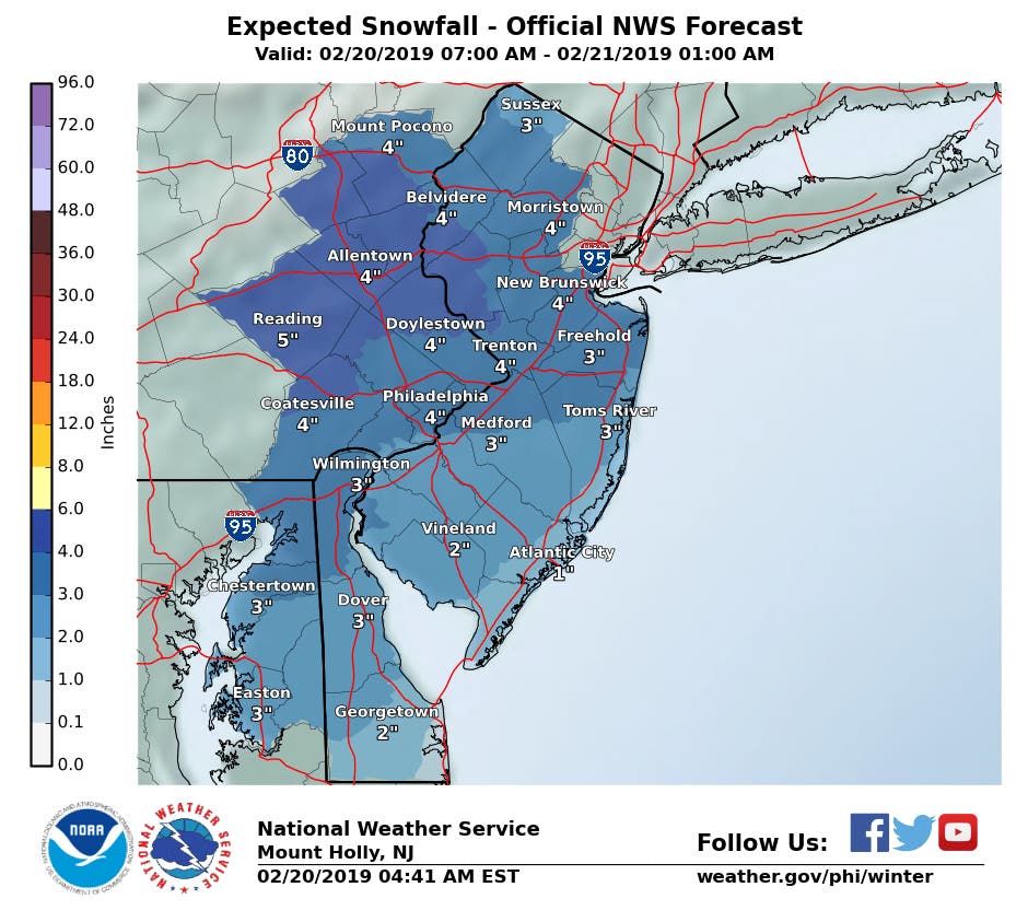 New Jersey Snow Totals, Town-By-Town - 2/20/19 - 2/21/19