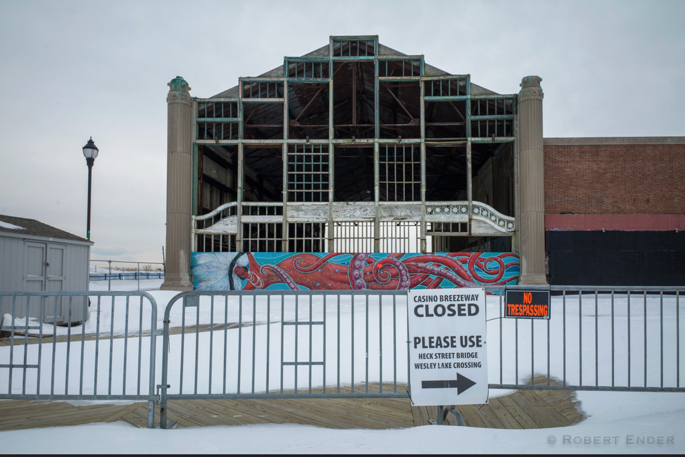 "Several weeks ago, due to forecasts for stormy and snowy weather, we conducted a special inspection of the breezeway through the Casino building (that’s the part that is the extension of the boardwalk). This inspection noted an area of concern, and, to protect public safety, we closed the outdoor path to Ocean Grove," the message said.