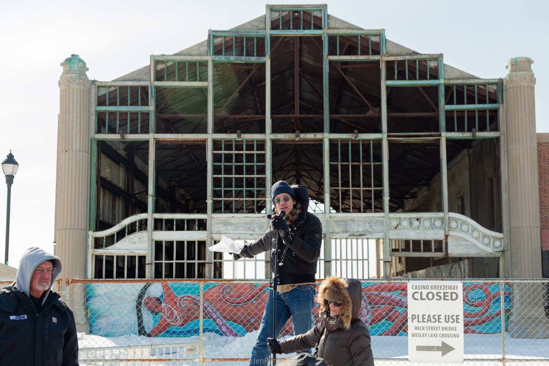 Despite assurances that the Casino "breezeway" will be restored, not demolished, close to 100 braved frigid temps to support preservation.