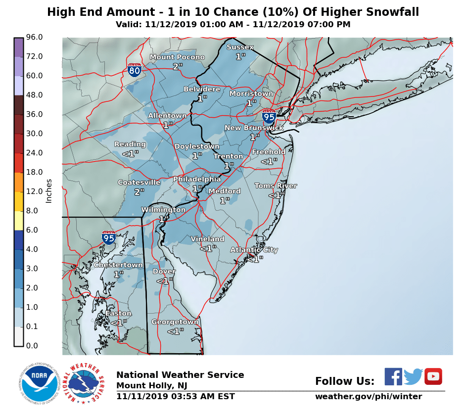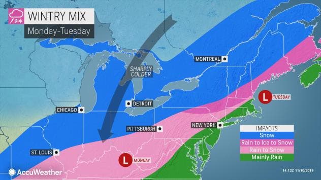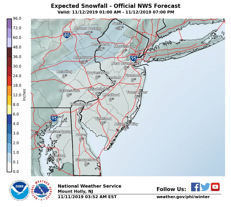 Most of the snow may impact North Jersey in the form of a wintry mix, leaving no more than an inch. Most of that is expected to happen after 8 p.m. on Tuesday (see below).