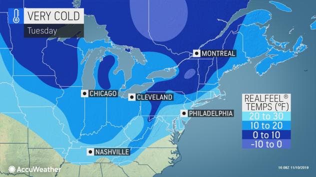 - Veterans Day: Partly sunny, with a high near 61. Calm wind becoming southwest around 6 mph.