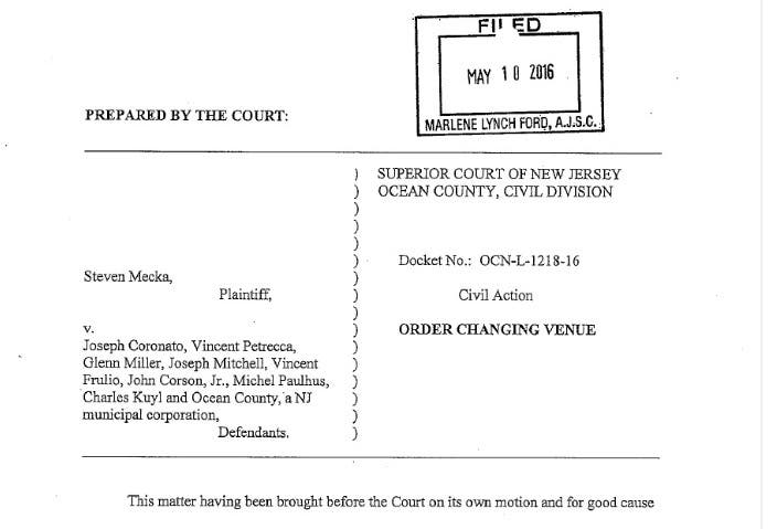 In the lawsuit, Mecka claims he investigated Dawn Kelly, a daughter of Ocean County Freeholder Jack Kelly who also has held the position of Little Egg Harbor tax collector.