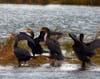 Their population swings aside, cormorants are an interesting subject for birdwatchers due to their unusual wing-drying behavior and dramatic dives.
