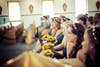 Emily started out her day getting pampered with her girls! Her and her bridesmaid got ready with matching silk robes and they even enjoyed mimosas! Our NJ Wedding Photographer captured all of the laughs that were had and all of the preparation for the big day. After getting into her beautiful dress, Emily and her girls took photos on the porch overlooking the beach. Her bridesmaids wore beautiful navy dress, and breathtaking sunflowers filled Emily’s bouquet.
