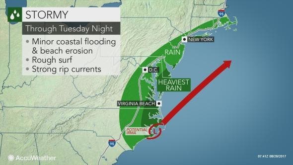 The winds hitting that impact New Jersey could become as punchy as that of a modest nor'easter, according to AccuWeather. Where the winds blow the strongest, from eastern North Carolina to the New Jersey cape, minor beach erosion can occur with minor coastal flooding possible at times of high tide.