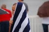 The Wahlers showed up with their 3-year-old daughter, Ava, who appeared to be having a good time – until the boats' revving engines made her cover her ears. She still managed a smile.