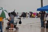 As the clouds formed above and spectators unfurled the umbrellas, it appeared as though the event would be a washout.