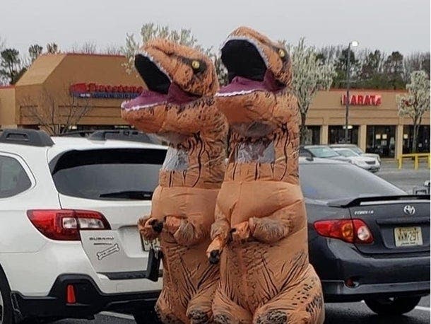 Two familiar (costumed) faces made Patch's national "good news" roundup. Two people dressed up as dinosaurs to visit ShopRite in Lacey earlier this week. They've given locals, and now people all over the United States, a much-needed laugh.