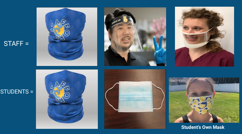 - Students won't be required to wear a face masks when staff are within 6 feet of them, but it's encouraged.