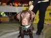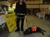 One of them, 6-month-old Arrow, a chocolate Labrador Retriever, alternately enthusiastically greeted visitors and napped on the floor during the show.