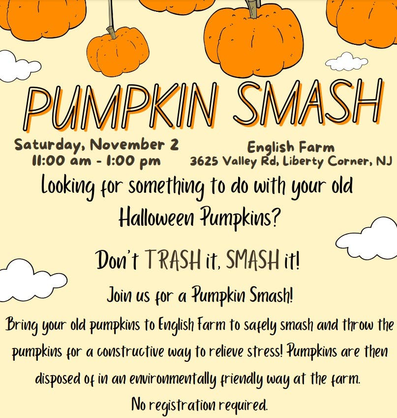 LIBERTY CORNER, NJ — Bernards Township Agricultural Advisory Committee is hosting its Fourth Annual Pumpkin Smash on Saturday, Nov. 2 from 11 a.m. to 1 p.m. at English Farm at 3625 Valley Road, Liberty Corner in Bernards Township.