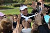 The full day of activities started with a sports clinic in the morning for about 70 area children ages 6 to 12. Children proceeded through "Nine Holes of Fun and Fitness," including how to drive the ball, pitching, putting and more general physical fitness activities such as twisting and stretching. Sorenstam joined the children in the morning.