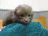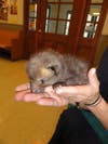 The baby coyote made a soft chirping sound, and seemed ready to fall asleep when removed from his carrier, and held in a blanket.